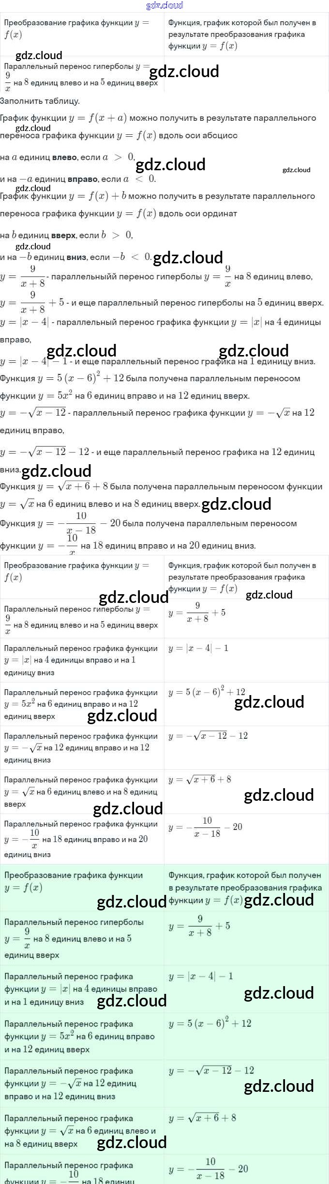 Ответы. §10. Построение графиков функций y=f(x)+b и y=f(x+a) по Алгебре 9 класс Рабочая тетрадь Мерзляк Часть 1, 2 Вентана-граф