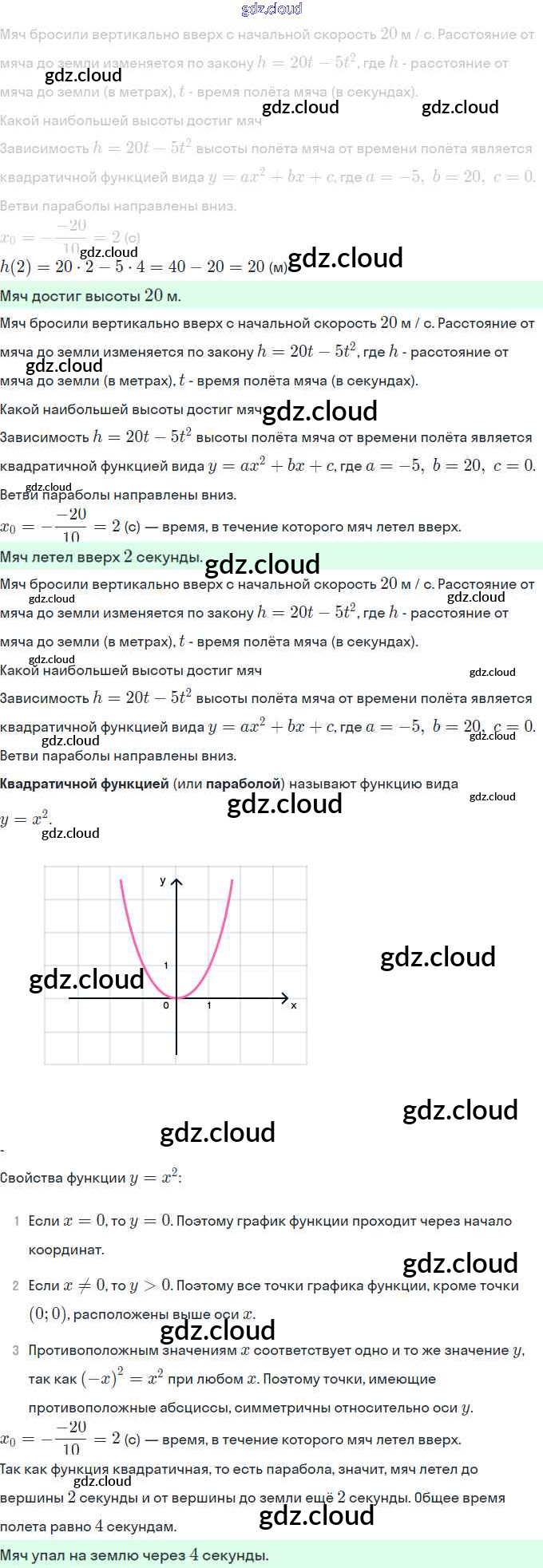 Ответы. §11. Квадратичная функция, её график и свойства по Алгебре 9 класс Рабочая тетрадь Мерзляк Часть 1, 2 Вентана-граф
