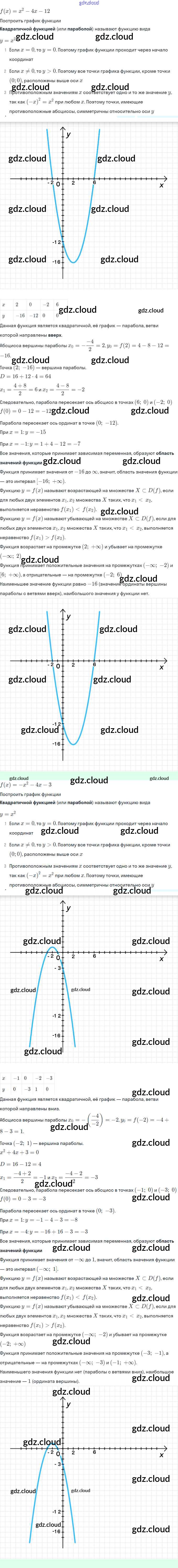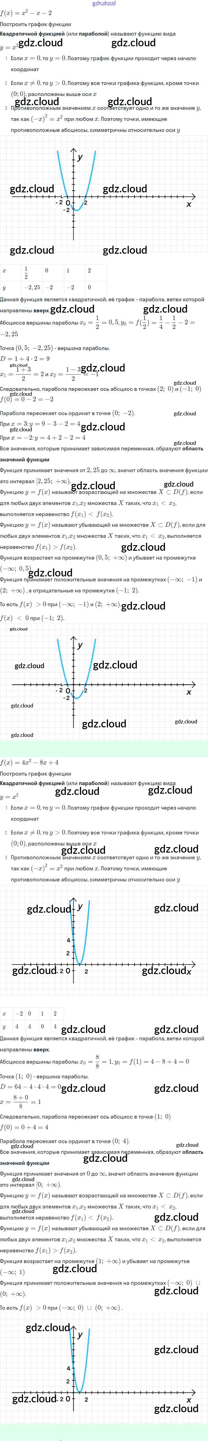 Ответы. §11. Квадратичная функция, её график и свойства по Алгебре 9 класс Рабочая тетрадь Мерзляк Часть 1, 2 Вентана-граф