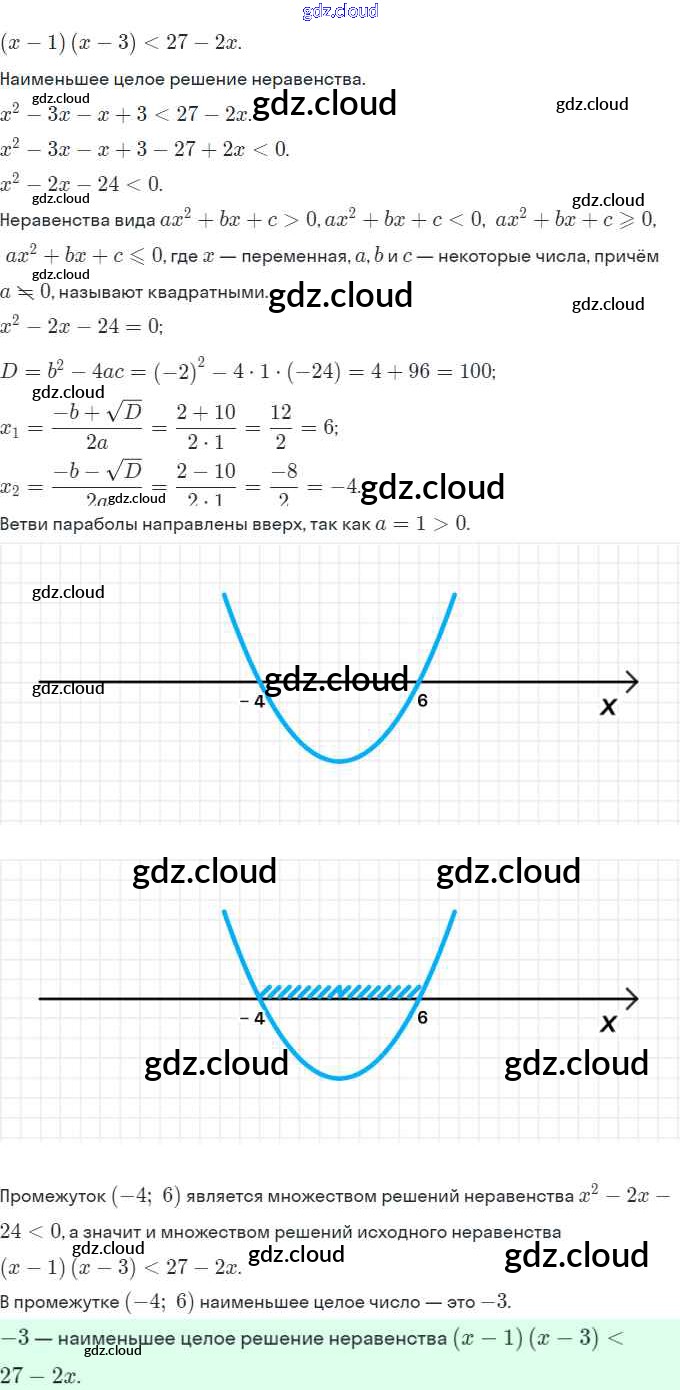Ответы. §12. Решение квадратных неравенств по Алгебре 9 класс Рабочая тетрадь Мерзляк Часть 1, 2 Вентана-граф