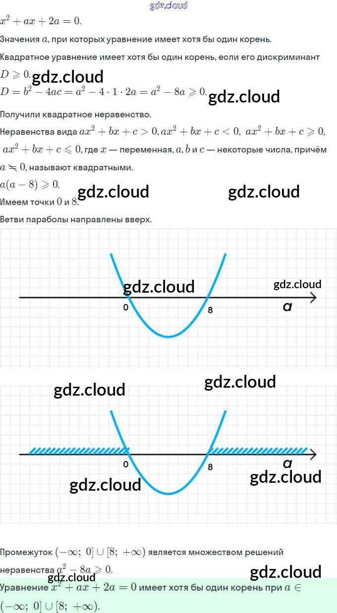 Ответы. §12. Решение квадратных неравенств по Алгебре 9 класс Рабочая тетрадь Мерзляк Часть 1, 2 Вентана-граф