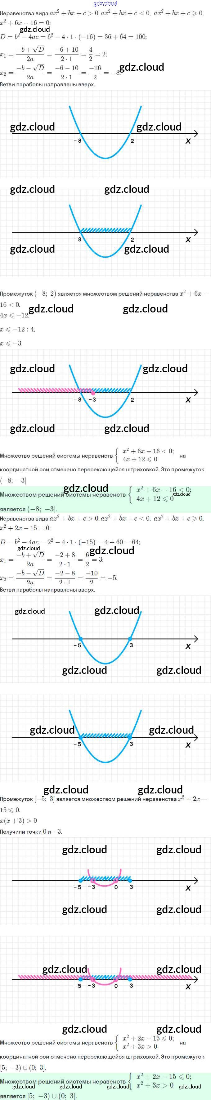Ответы. §12. Решение квадратных неравенств по Алгебре 9 класс Рабочая тетрадь Мерзляк Часть 1, 2 Вентана-граф
