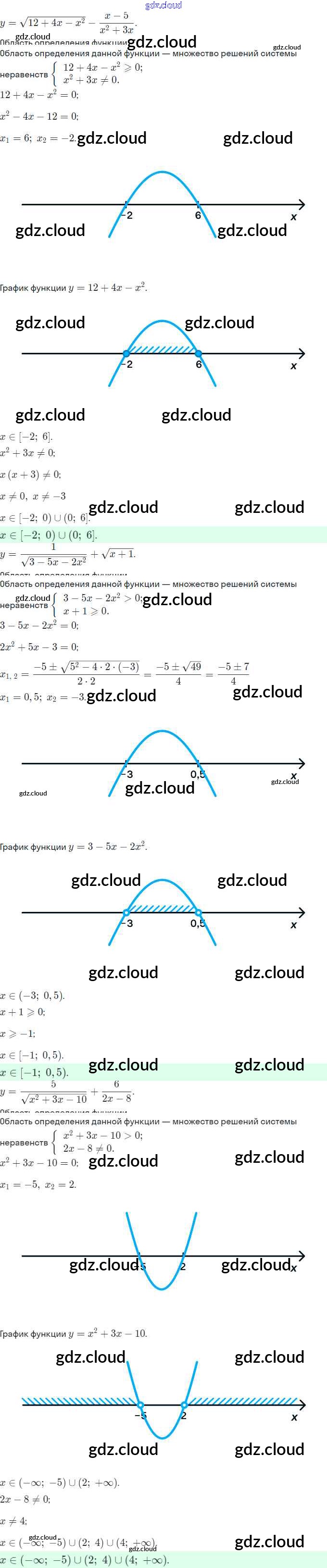 Ответы. §12. Решение квадратных неравенств по Алгебре 9 класс Рабочая тетрадь Мерзляк Часть 1, 2 Вентана-граф