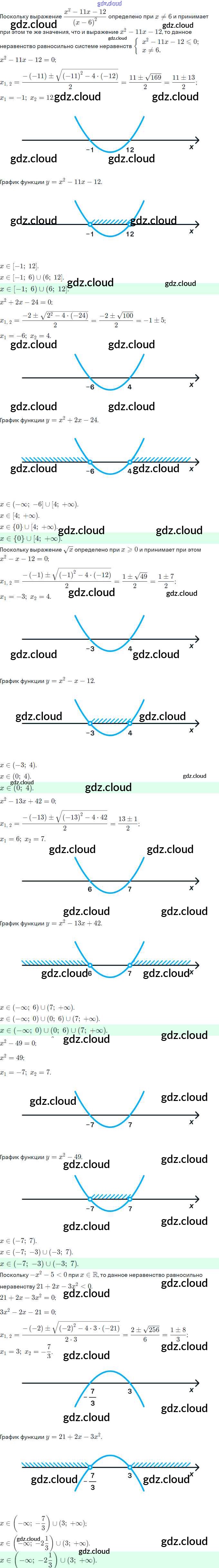 Ответы. §12. Решение квадратных неравенств по Алгебре 9 класс Рабочая тетрадь Мерзляк Часть 1, 2 Вентана-граф