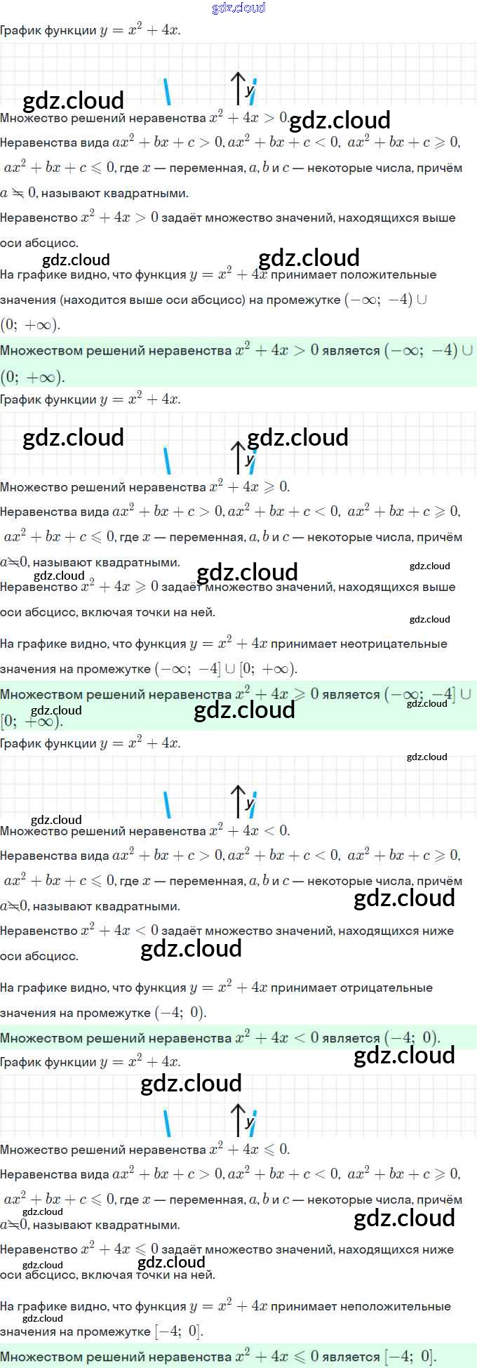Ответы. §12. Решение квадратных неравенств по Алгебре 9 класс Рабочая тетрадь Мерзляк Часть 1, 2 Вентана-граф