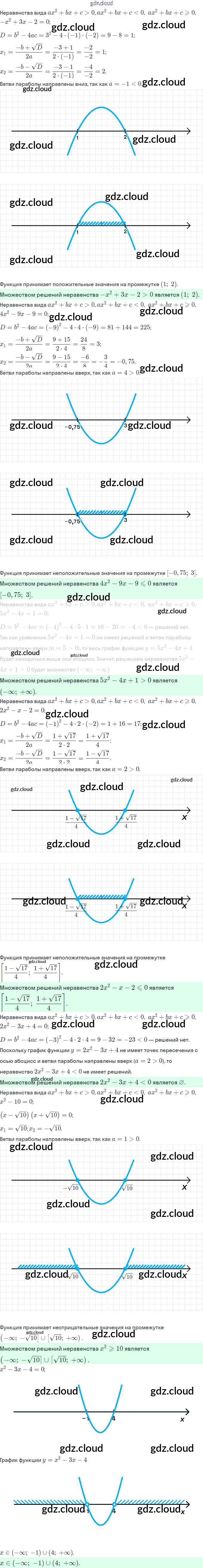 Ответы. §12. Решение квадратных неравенств по Алгебре 9 класс Рабочая тетрадь Мерзляк Часть 1, 2 Вентана-граф