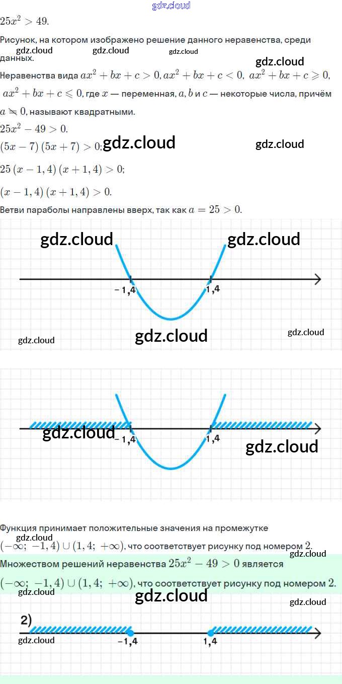 Ответы. §12. Решение квадратных неравенств по Алгебре 9 класс Рабочая тетрадь Мерзляк Часть 1, 2 Вентана-граф