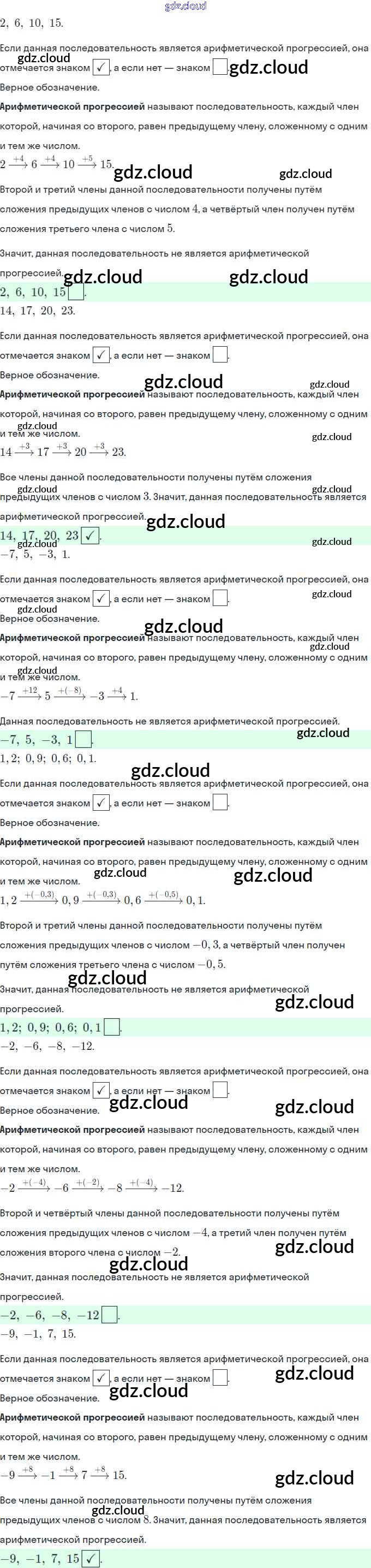 Ответы. §22. Арифметическая прогрессия по Алгебре 9 класс Рабочая тетрадь Мерзляк Часть 1, 2 Вентана-граф