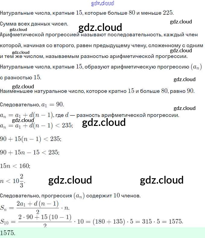 Ответы. §23. Сумма n первых членов арифметической прогрессии по Алгебре 9 класс Рабочая тетрадь Мерзляк Часть 1, 2 Вентана-граф