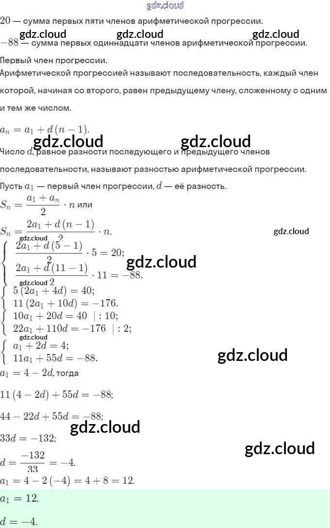Ответы. §23. Сумма n первых членов арифметической прогрессии по Алгебре 9 класс Рабочая тетрадь Мерзляк Часть 1, 2 Вентана-граф