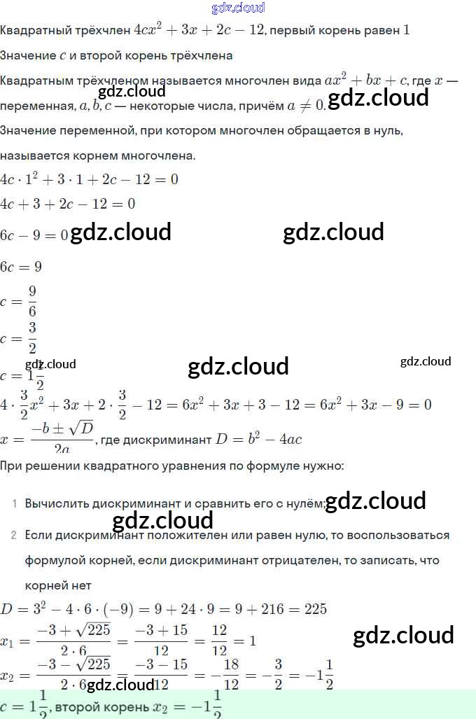Ответы. §3. Квадратный трёхчлен и его корни по Алгебре 9 класс Рабочая тетрадь Миндюк Часть 1, 2 Просвещение