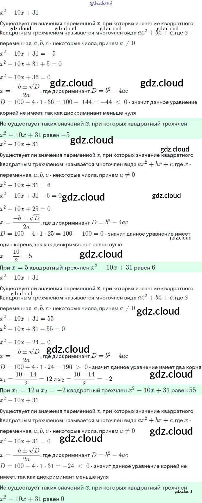 Ответы. §3. Квадратный трёхчлен и его корни по Алгебре 9 класс Рабочая тетрадь Миндюк Часть 1, 2 Просвещение