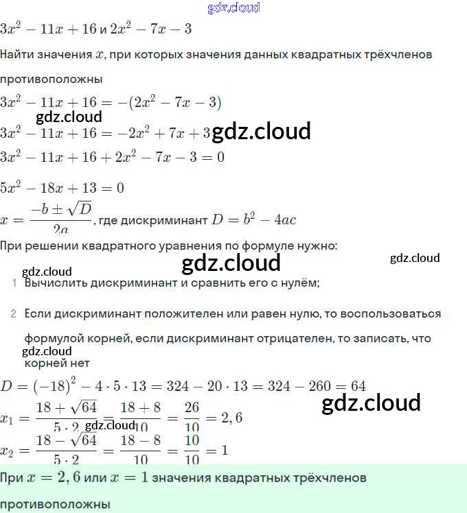 Ответы. §3. Квадратный трёхчлен и его корни по Алгебре 9 класс Рабочая тетрадь Миндюк Часть 1, 2 Просвещение