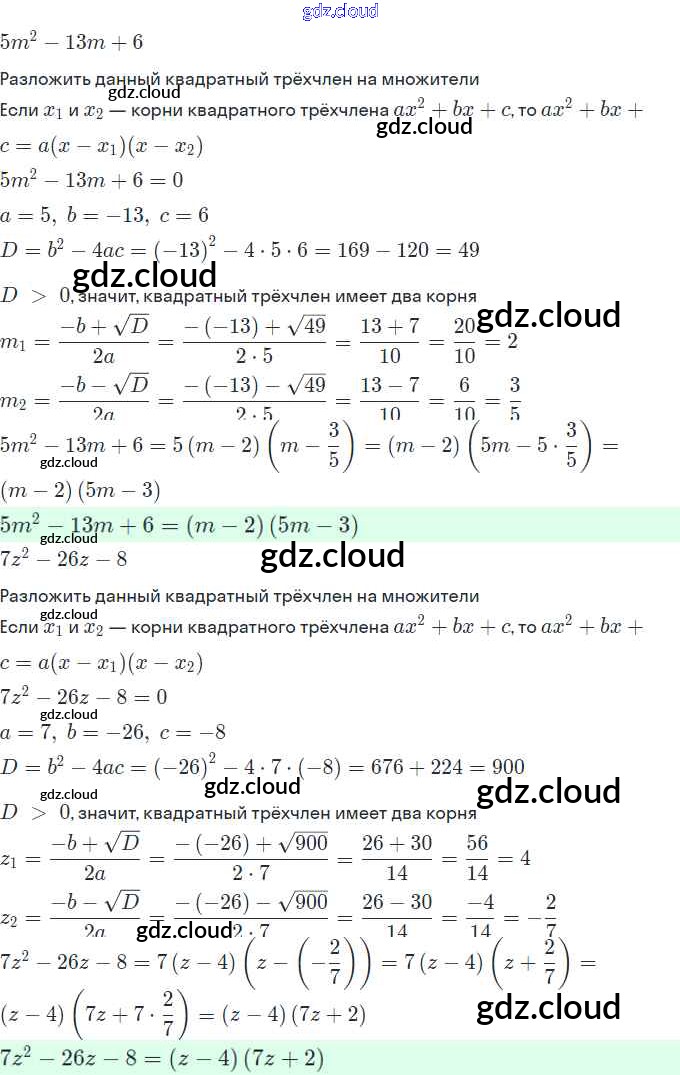 Ответы. §4. Разложение квадратного трёхчлена на множители по Алгебре 9 класс Рабочая тетрадь Миндюк Часть 1, 2 Просвещение
