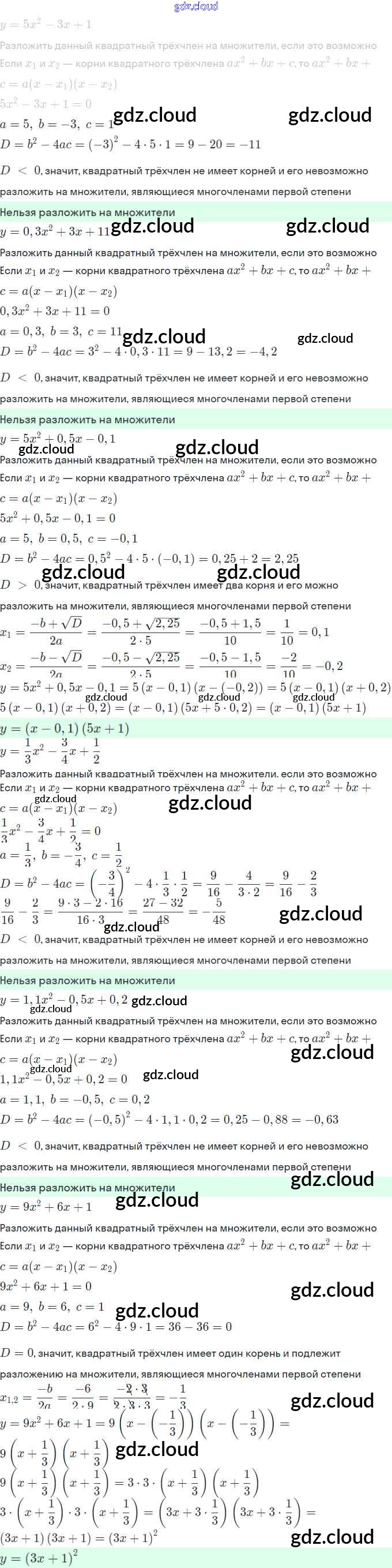 Ответы. §4. Разложение квадратного трёхчлена на множители по Алгебре 9 класс Рабочая тетрадь Миндюк Часть 1, 2 Просвещение