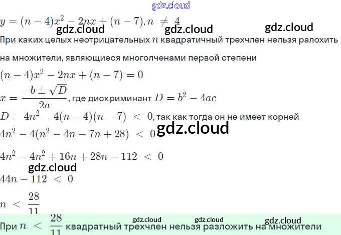 Ответы. §4. Разложение квадратного трёхчлена на множители по Алгебре 9 класс Рабочая тетрадь Миндюк Часть 1, 2 Просвещение
