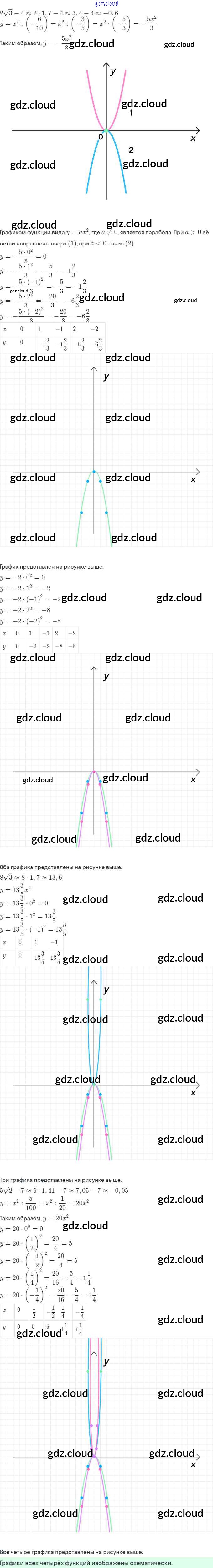 Ответы. §5. Функция y=ax^2, её график и свойства по Алгебре 9 класс Рабочая тетрадь Миндюк Часть 1, 2 Просвещение
