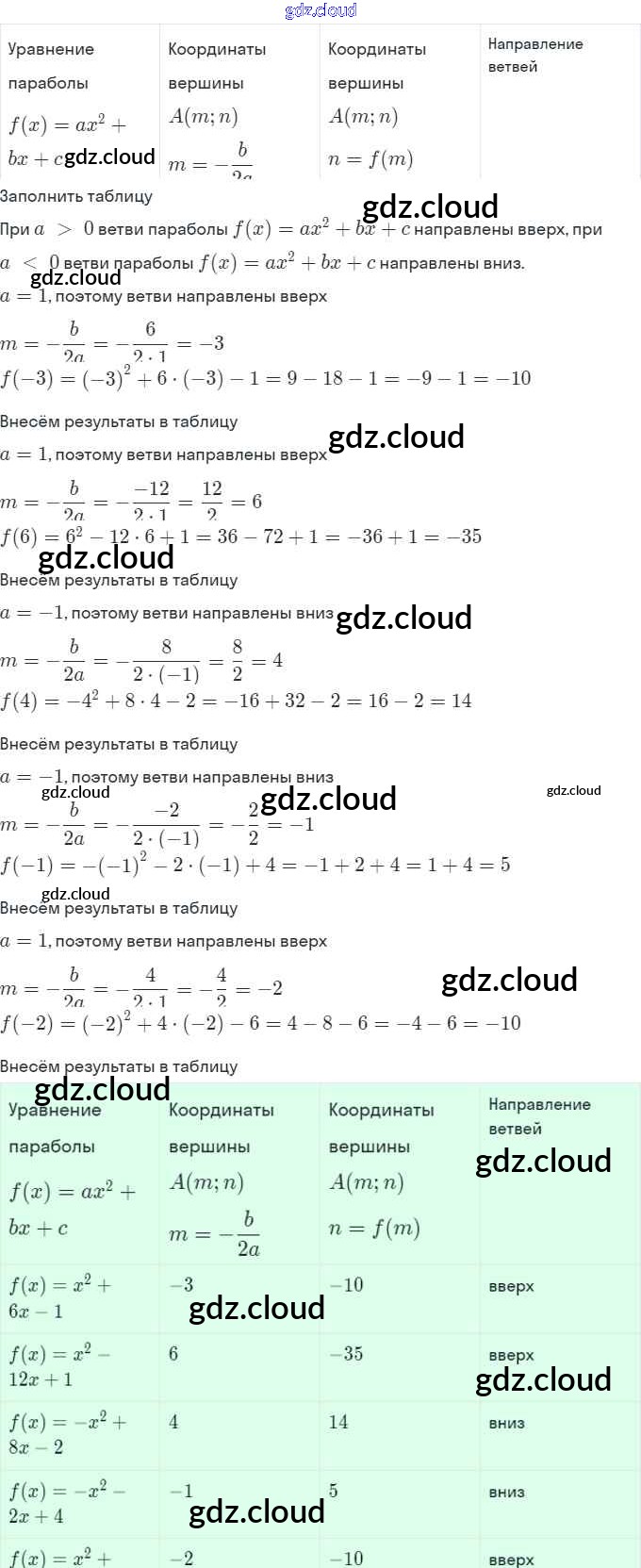 Ответы. §7. Построение графика квадратичной функции по Алгебре 9 класс Рабочая тетрадь Миндюк Часть 1, 2 Просвещение