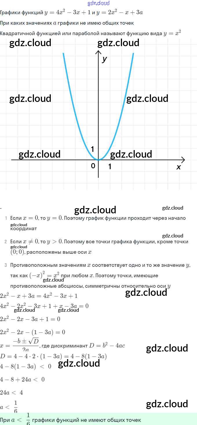 Ответы. §7. Построение графика квадратичной функции по Алгебре 9 класс Рабочая тетрадь Миндюк Часть 1, 2 Просвещение