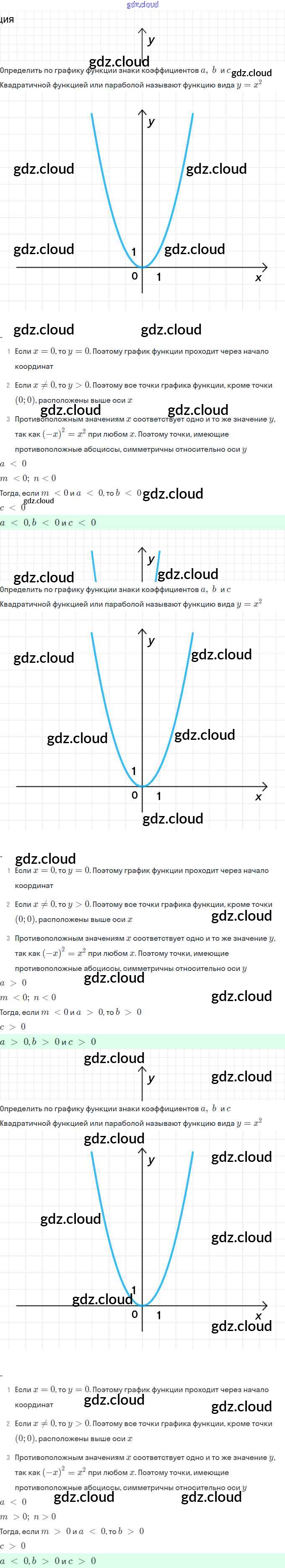 Ответы. §7. Построение графика квадратичной функции по Алгебре 9 класс Рабочая тетрадь Миндюк Часть 1, 2 Просвещение