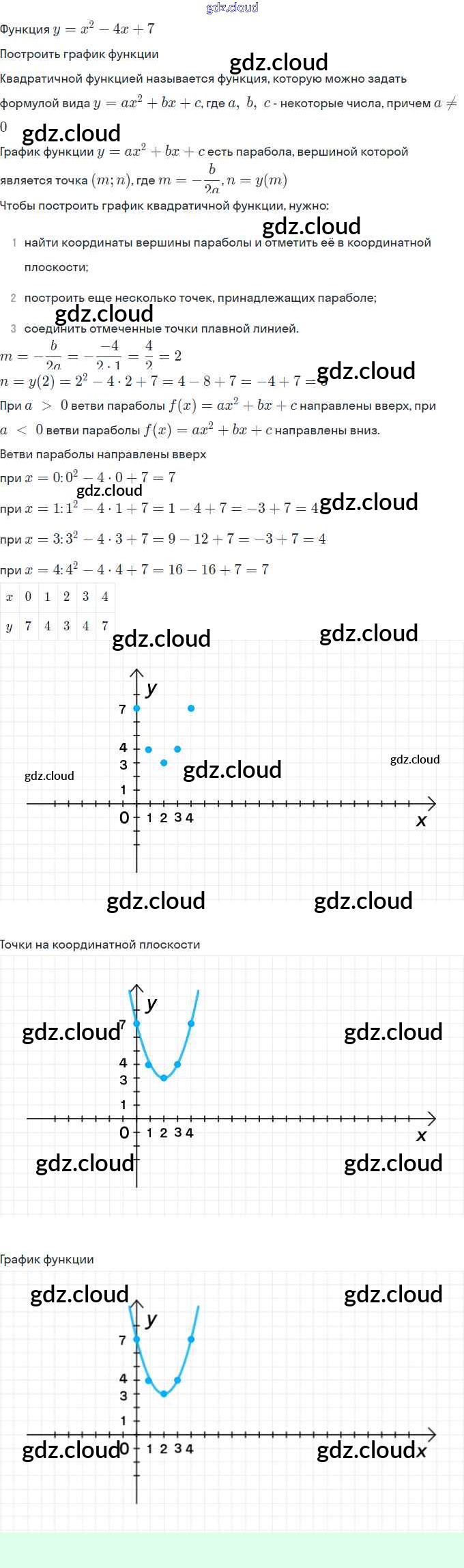 Ответы. §7. Построение графика квадратичной функции по Алгебре 9 класс Рабочая тетрадь Миндюк Часть 1, 2 Просвещение