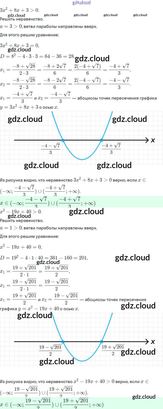 Ответы. §12. Решение неравенств второй степени с одной переменной по Алгебре 9 класс Рабочая тетрадь Миндюк Часть 1, 2 Просвещение