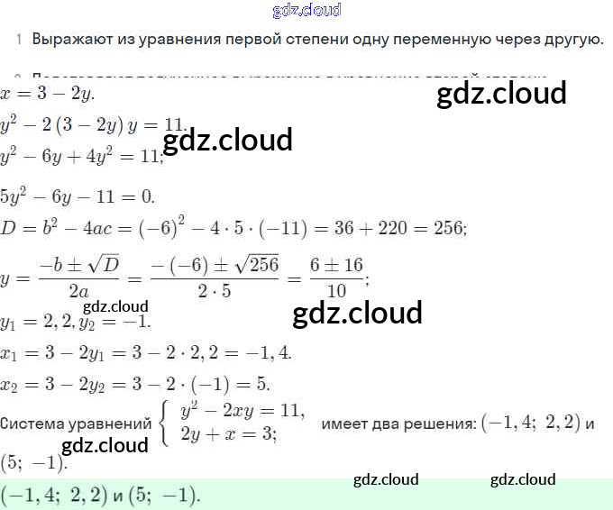 Ответы. §16. Решение систем уравнений второй степени по Алгебре 9 класс Рабочая тетрадь Миндюк Часть 1, 2 Просвещение
