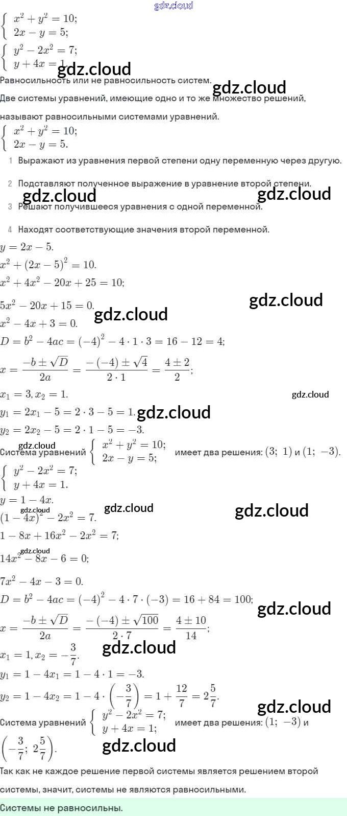 Ответы. §16. Решение систем уравнений второй степени по Алгебре 9 класс Рабочая тетрадь Миндюк Часть 1, 2 Просвещение