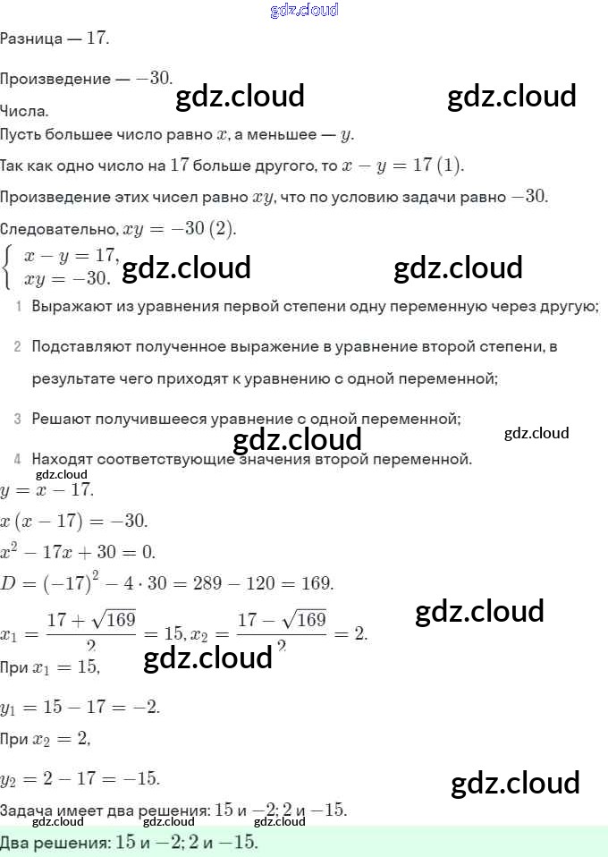 Ответы. §17. Решение задач с помощью систем уравнений второй степени по Алгебре 9 класс Рабочая тетрадь Миндюк Часть 1, 2 Просвещение