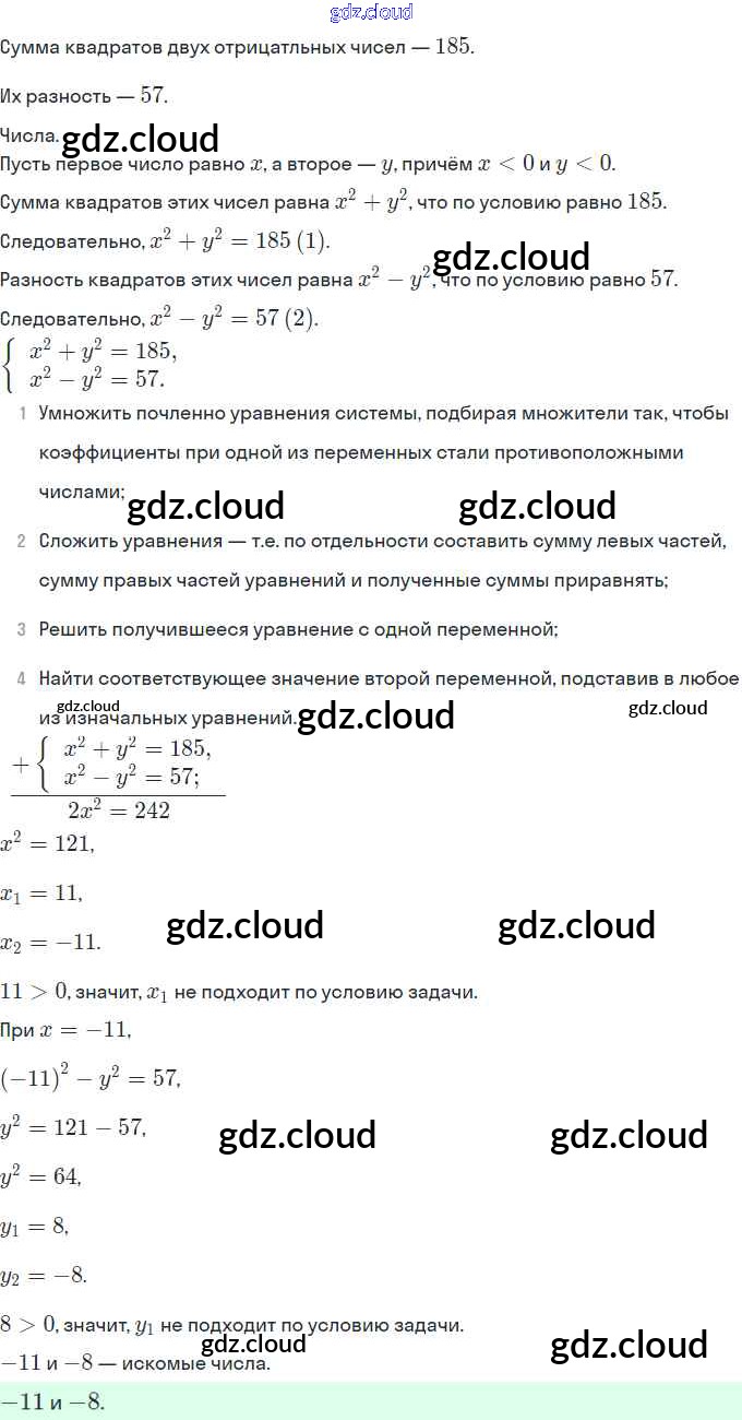 Ответы. §17. Решение задач с помощью систем уравнений второй степени по Алгебре 9 класс Рабочая тетрадь Миндюк Часть 1, 2 Просвещение