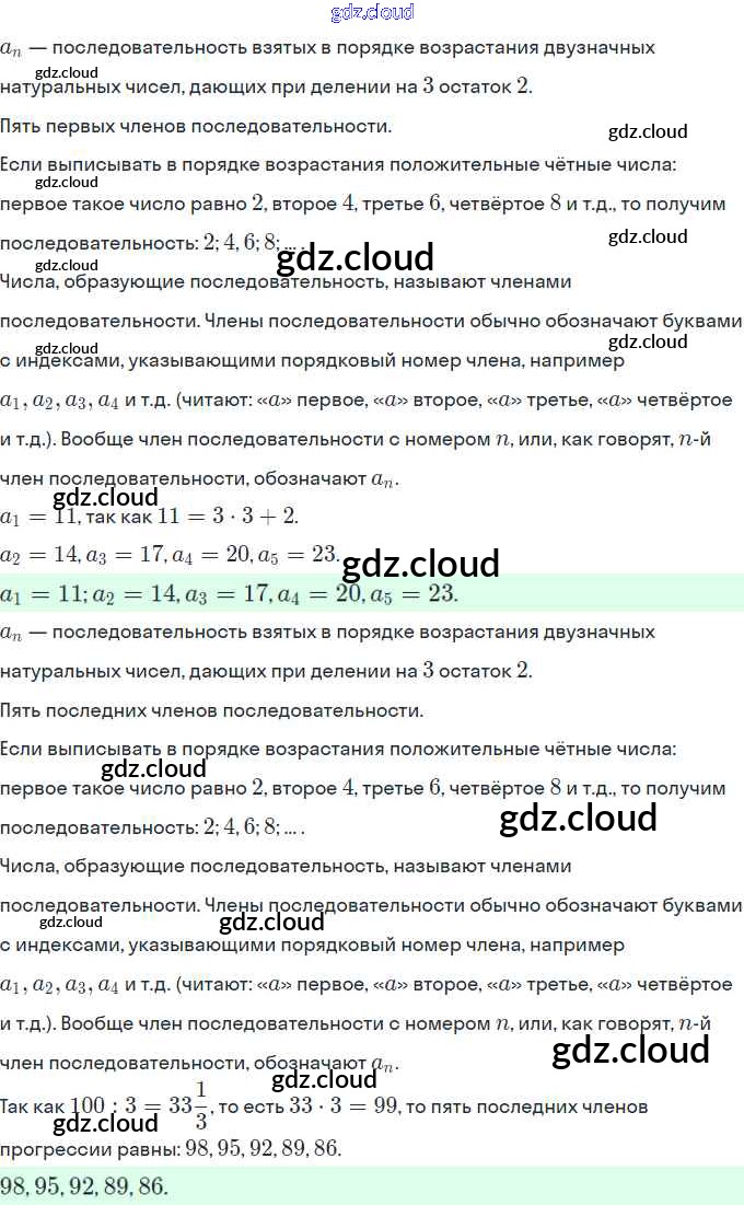 Ответы. §20. Последовательности по Алгебре 9 класс Рабочая тетрадь Миндюк Часть 1, 2 Просвещение