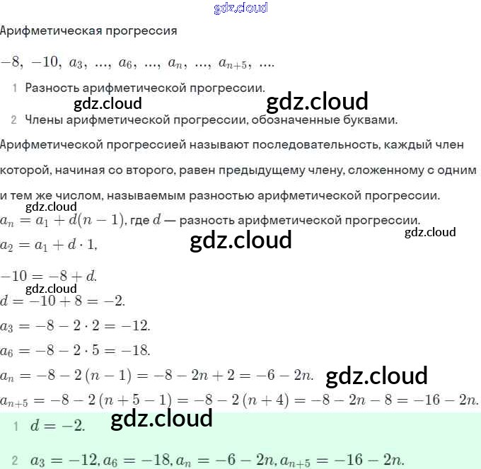 Ответы. §21. Определение арифметической прогрессии. Формула n-го члена арифметической прогрессии по Алгебре 9 класс Рабочая тетрадь Миндюк Часть 1, 2 Просвещение
