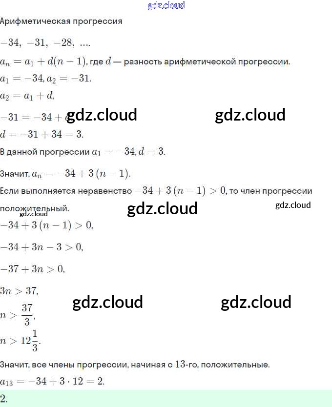 Ответы. §21. Определение арифметической прогрессии. Формула n-го члена арифметической прогрессии по Алгебре 9 класс Рабочая тетрадь Миндюк Часть 1, 2 Просвещение