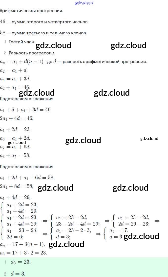 Ответы. §21. Определение арифметической прогрессии. Формула n-го члена арифметической прогрессии по Алгебре 9 класс Рабочая тетрадь Миндюк Часть 1, 2 Просвещение