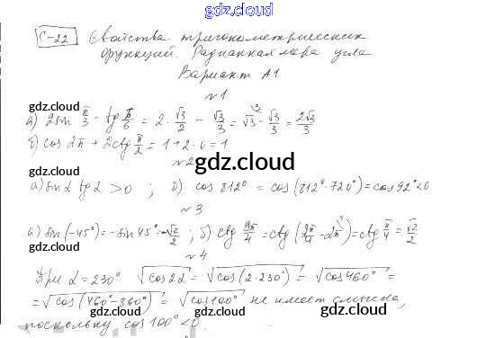алгебра / самостоятельная работа / ср-22. вариант / А1