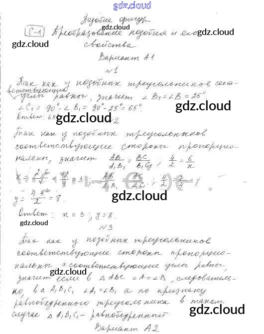 геометрия / к учебнику Погорелова / самостоятельная работа / ср-1. вариант / А1
