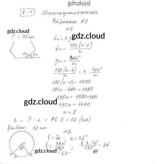 геометрия / к учебнику Погорелова / контрольная работа / кр-3. вариант / А1