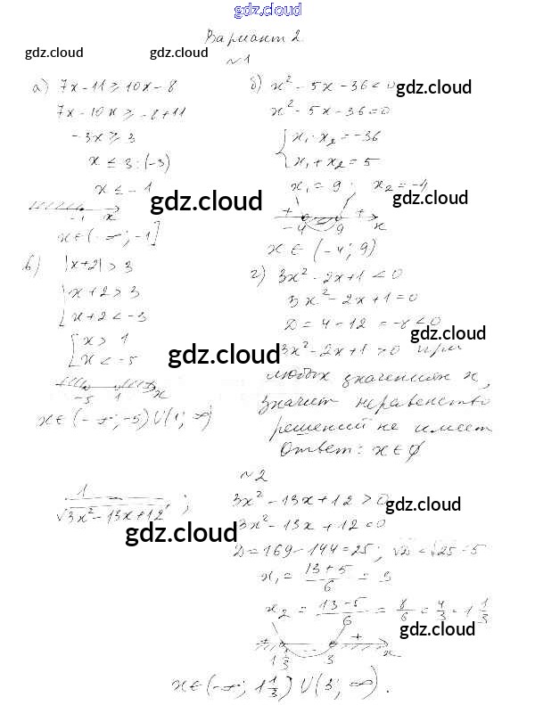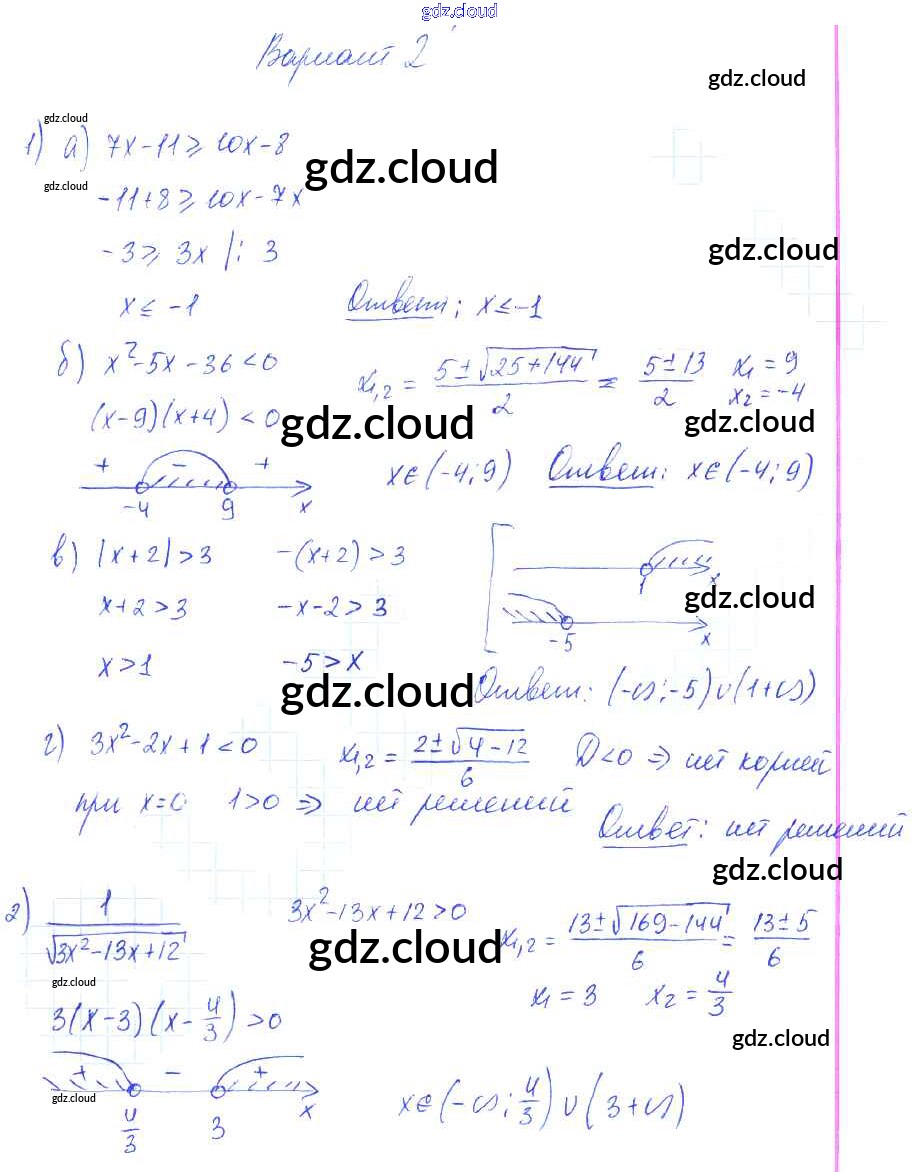 СР-1. Линейные и квадратные неравенства Ответы к теме 1. Неравенства и системы неравенств по Алгебре 9 класс Самостоятельные работы Александрова УМК Базовый уровень Мнемозина