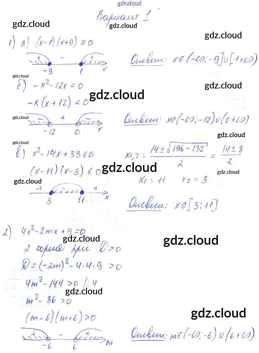 Ответ на задание вариант 1 Самостоятельные работы Алгебра за 9 (девятый) класс Александрова УМК Базовый уровень 2016