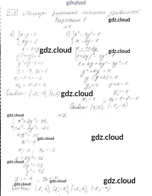 СР-8. Методы решения систем уравнений Ответы к теме 2. Системы уравнений по Алгебре 9 класс Самостоятельные работы Александрова УМК Базовый уровень Мнемозина