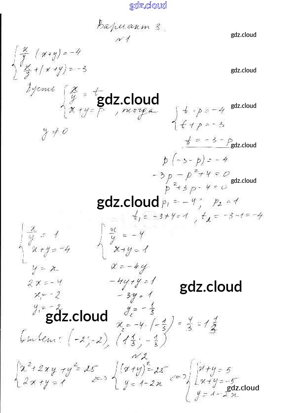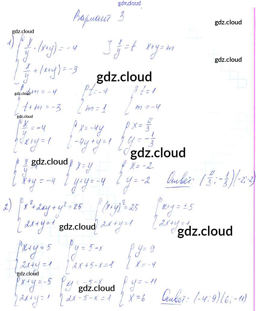 СР-9. Методы решения систем уравнений Ответы к теме 2. Системы уравнений по Алгебре 9 класс Самостоятельные работы Александрова УМК Базовый уровень Мнемозина