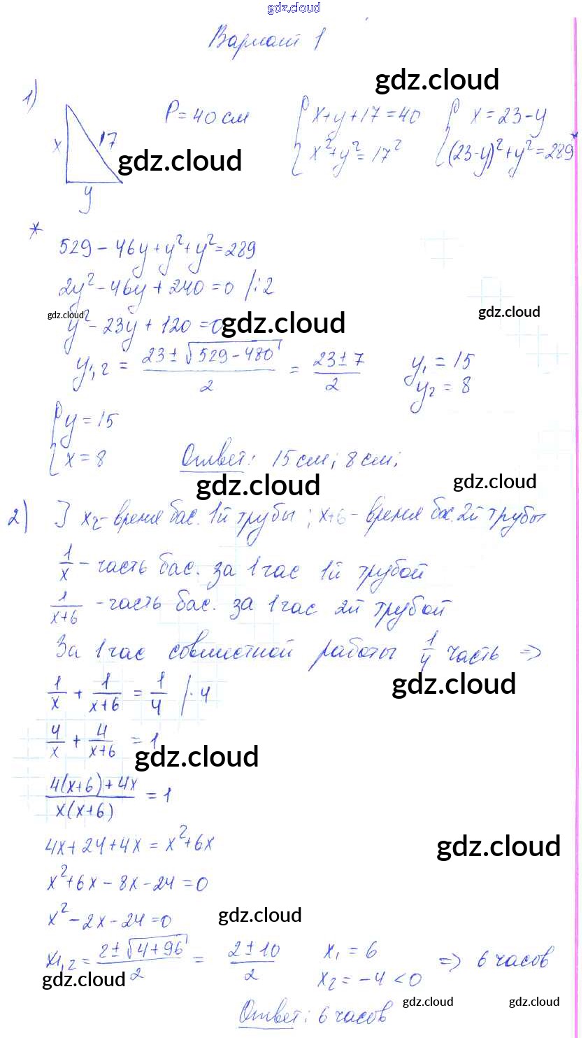 Ответ на задание вариант 1 Самостоятельные работы Алгебра за 9 (девятый) класс Александрова УМК Базовый уровень 2016