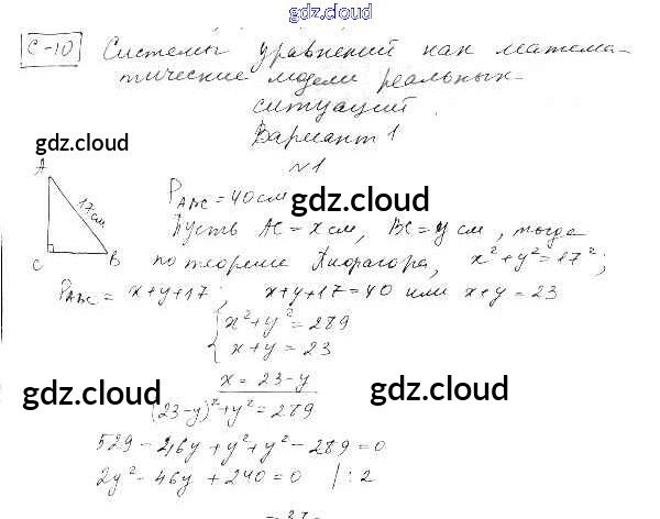 СР-10. Системы уравнений как математические модели реальных ситуаций Ответы к теме 2. Системы уравнений по Алгебре 9 класс Самостоятельные работы Александрова УМК Базовый уровень Мнемозина