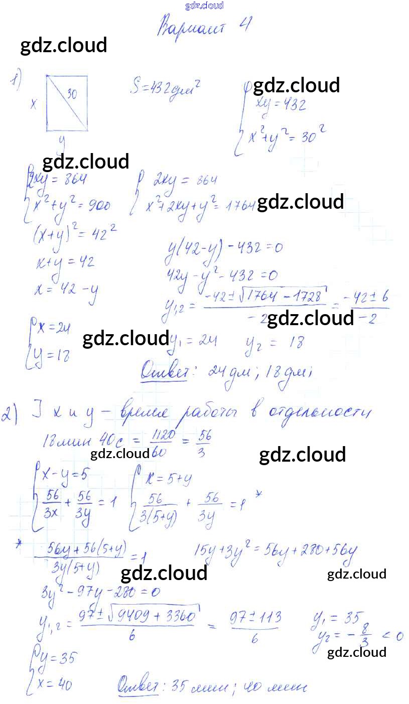 Ответ на задание вариант 4 Самостоятельные работы Алгебра за 9 (девятый) класс Александрова УМК Базовый уровень 2016