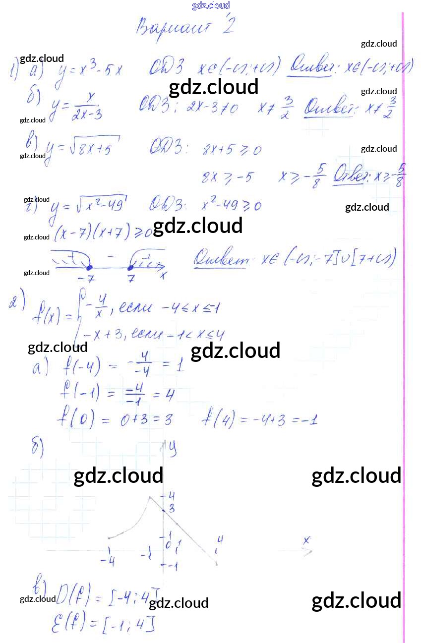 СР-11. Определение числовой функции Ответы к теме 3. Числовые функции по Алгебре 9 класс Самостоятельные работы Александрова УМК Базовый уровень Мнемозина
