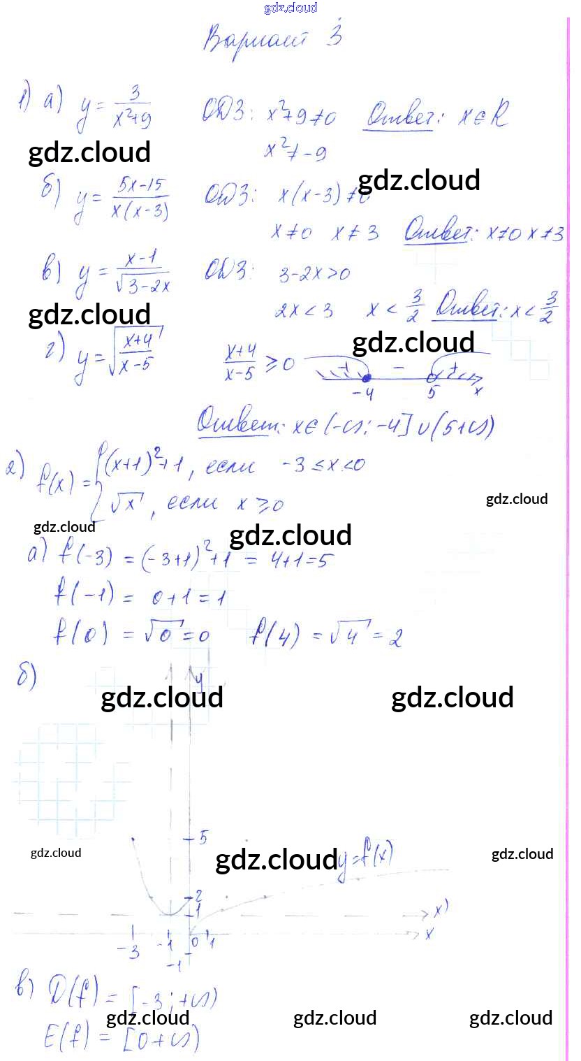 СР-11. Определение числовой функции Ответы к теме 3. Числовые функции по Алгебре 9 класс Самостоятельные работы Александрова УМК Базовый уровень Мнемозина