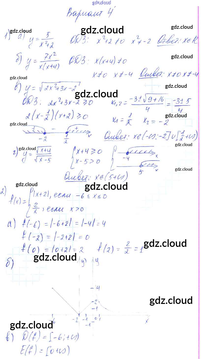 Ответ на задание вариант 4 Самостоятельные работы Алгебра за 9 (девятый) класс Александрова УМК Базовый уровень 2016