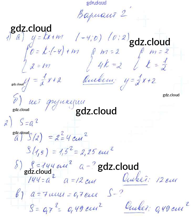 Ответ на задание вариант 2 Самостоятельные работы Алгебра за 9 (девятый) класс Александрова УМК Базовый уровень 2016