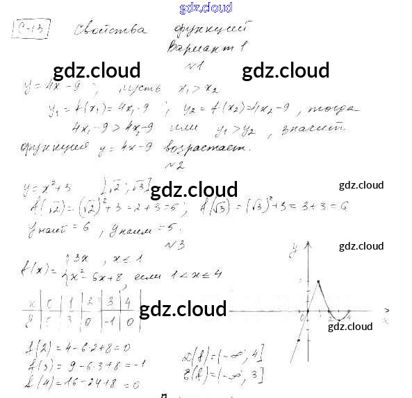 СР-13. Свойства функций Ответы к теме 3. Числовые функции по Алгебре 9 класс Самостоятельные работы Александрова УМК Базовый уровень Мнемозина