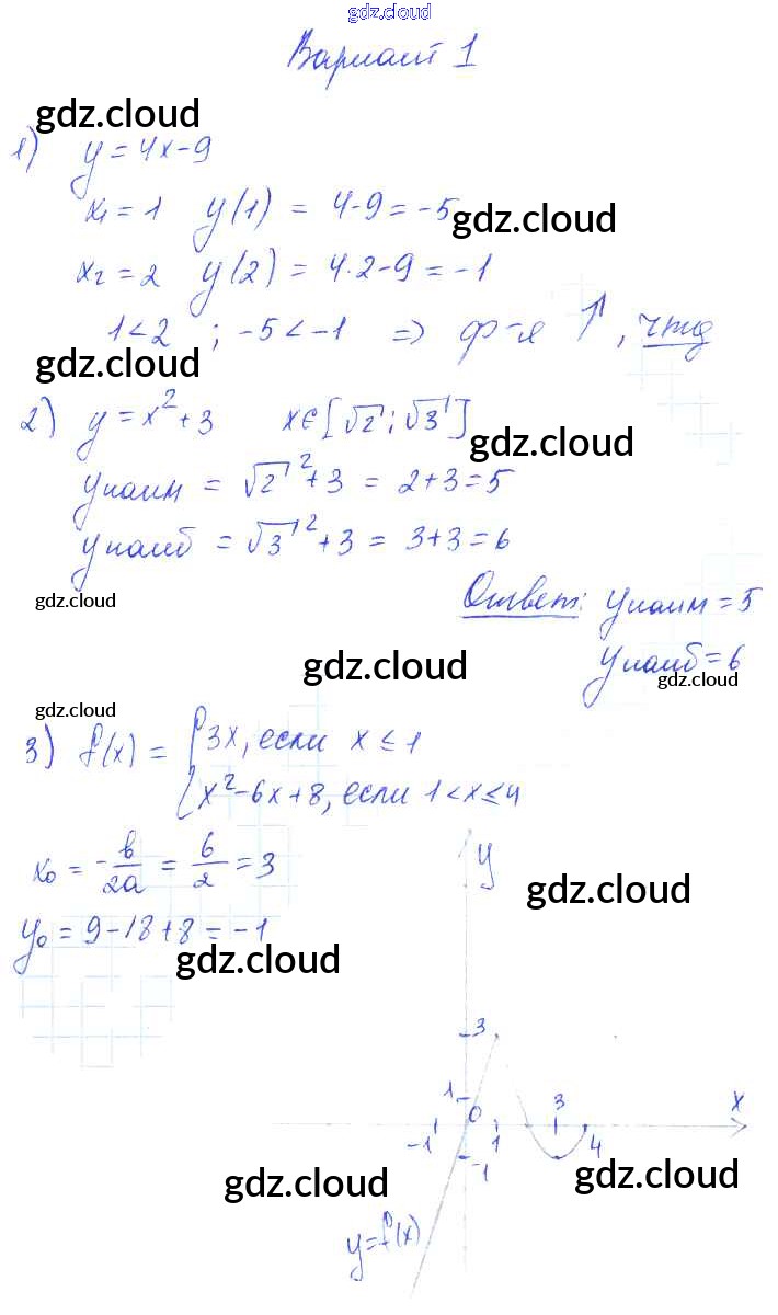 Ответ на задание вариант 1 Самостоятельные работы Алгебра за 9 (девятый) класс Александрова УМК Базовый уровень 2016